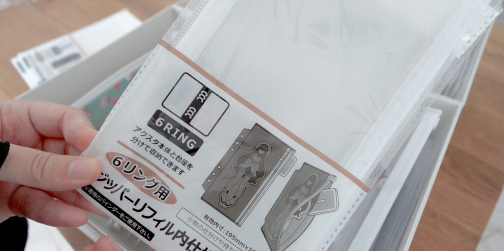 セリアの6リング用ジッパーリフィルにアクスタを入れて